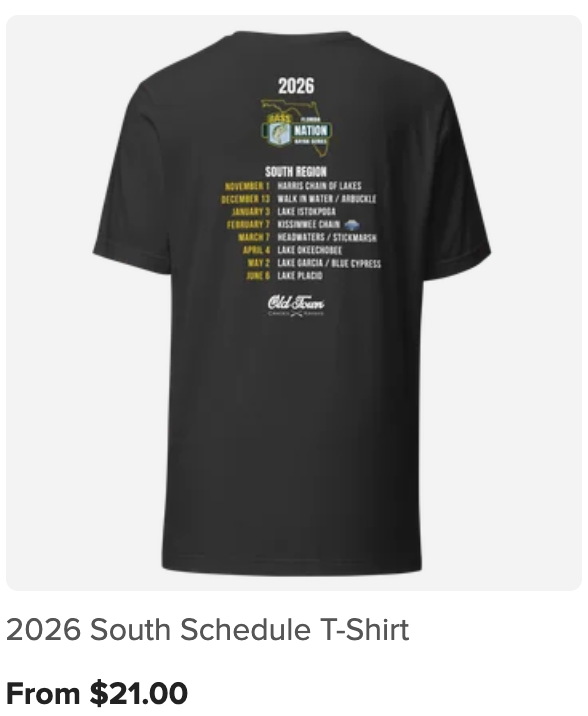 To view and purchase our apparel, either click the individual item or click the link below to go to the full store to view all of our apparel. Approximately 10% of each sale goes back to the Florida Bass Nation Kayak Series.